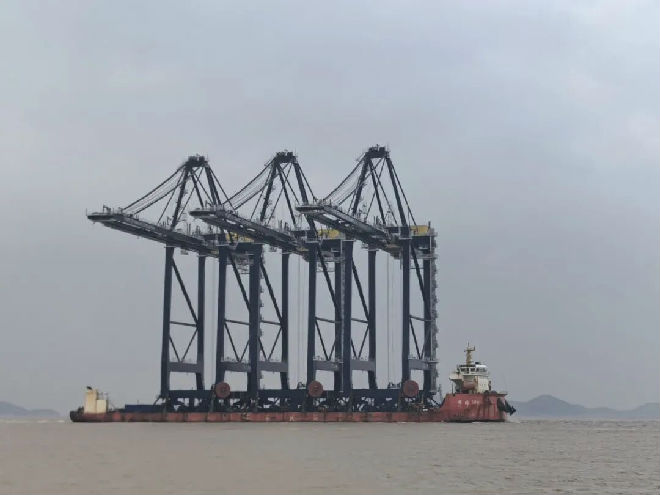 2月2日12时40分,装载3台大型桥吊的“厚德198”轮在宁波引航的精心引领下,历时4个多小时,顺利完成招商0号泊位首靠作业。