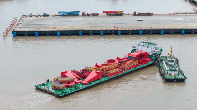 近日,在宁波引航高级引航员王宝金的精心引领下,满载着斗轮机部件的“汉旺16”轮安全靠妥北一集司7号泊位。