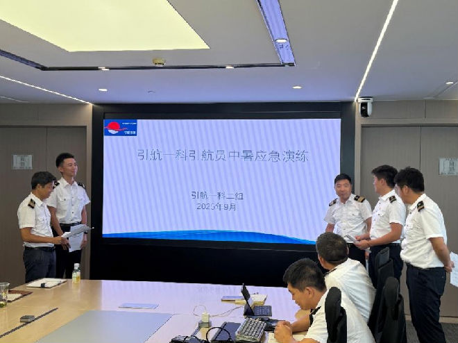 安全生产是引航事业发展的生命线,须以“时时放心不下”的责任感织密安全防护网。近日,宁波引航系统开展系列安全提升行动,一系列举措既从思想根源拧紧责任链条,又以实操实训夯实技能根基,为高温季节引航生产构建起安全防护体系。中暑演练 “接地气” 安全防护 “有底气”9月2日为切实提升夏季高温环境下的应急处置能力,引航一科在安全会上,二组组织了一场生动务实的引航员中暑应急演练,为全体人员送上“防暑安全课”。演练现场“生龙活虎”,二组队员通过情景模拟,还原了引航员在引航作业中突发中暑的场景:发现同伴出现头晕、面色潮红、乏力等症状后,处置人员迅速将其转移至阴凉通风处,规范开展平卧休息、解开衣领、物理降温、补充淡盐水等应急操作,整个流程紧张有序、动作标准、形象贴切。随后,他们还结合引航作业特点,详细讲解了高温防护要点、中暑先兆识别及不同程度中暑的处置方法。此次演练让全体人员直观掌握了中暑应急的关键环节,有效强化了高温作业安全防范意识和应急处置本领,为夏季引航作业安全提供了有力保障。