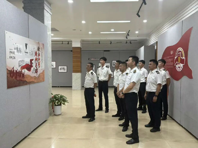 临近国庆,支部组织空班党员赴宁波图书馆参观“铁血山河·精神丰碑”爱国图片展。600余张珍贵影像、多部权威史料专著,回顾着祖国成长的光荣历史,更昭示着和平的无比珍贵。参观后,由引航一科党支部副书记李延峰为大家带来了一场微党课《从“铁血”到“铁肩”——引航人的时代答卷》,把“爱国精神”转化为“引航担当”,把“必胜信念”转化为“零事故、零污染、零投诉”的引航使命。
