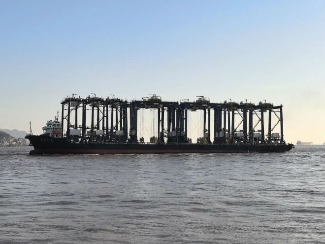 2026年1月4日,在宁波引航团队的精心引领下,装载着12台RTG吊的首航船舶“星海之星”轮,安全靠泊大榭招商码头4号泊位。